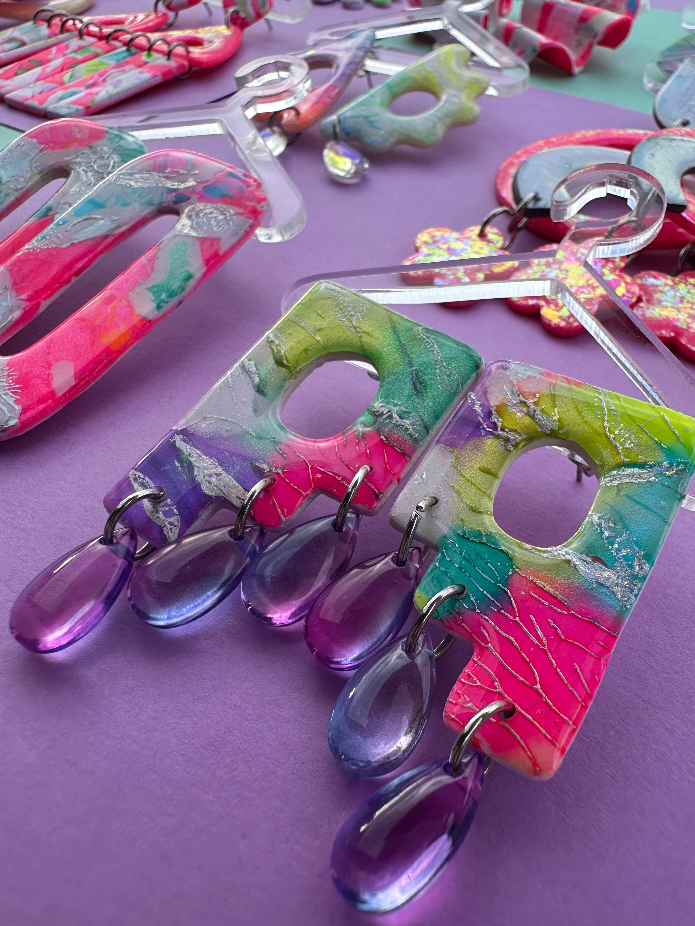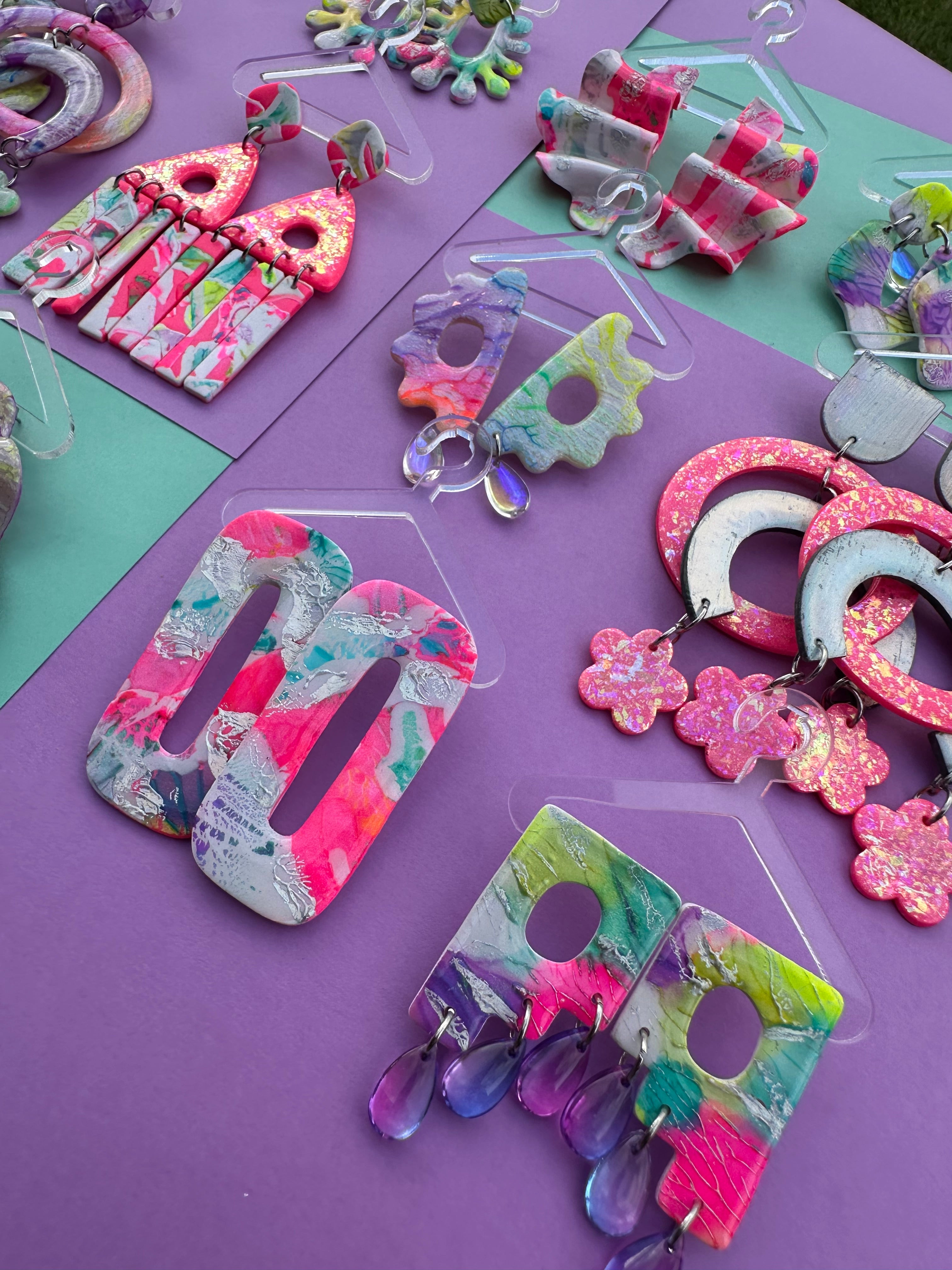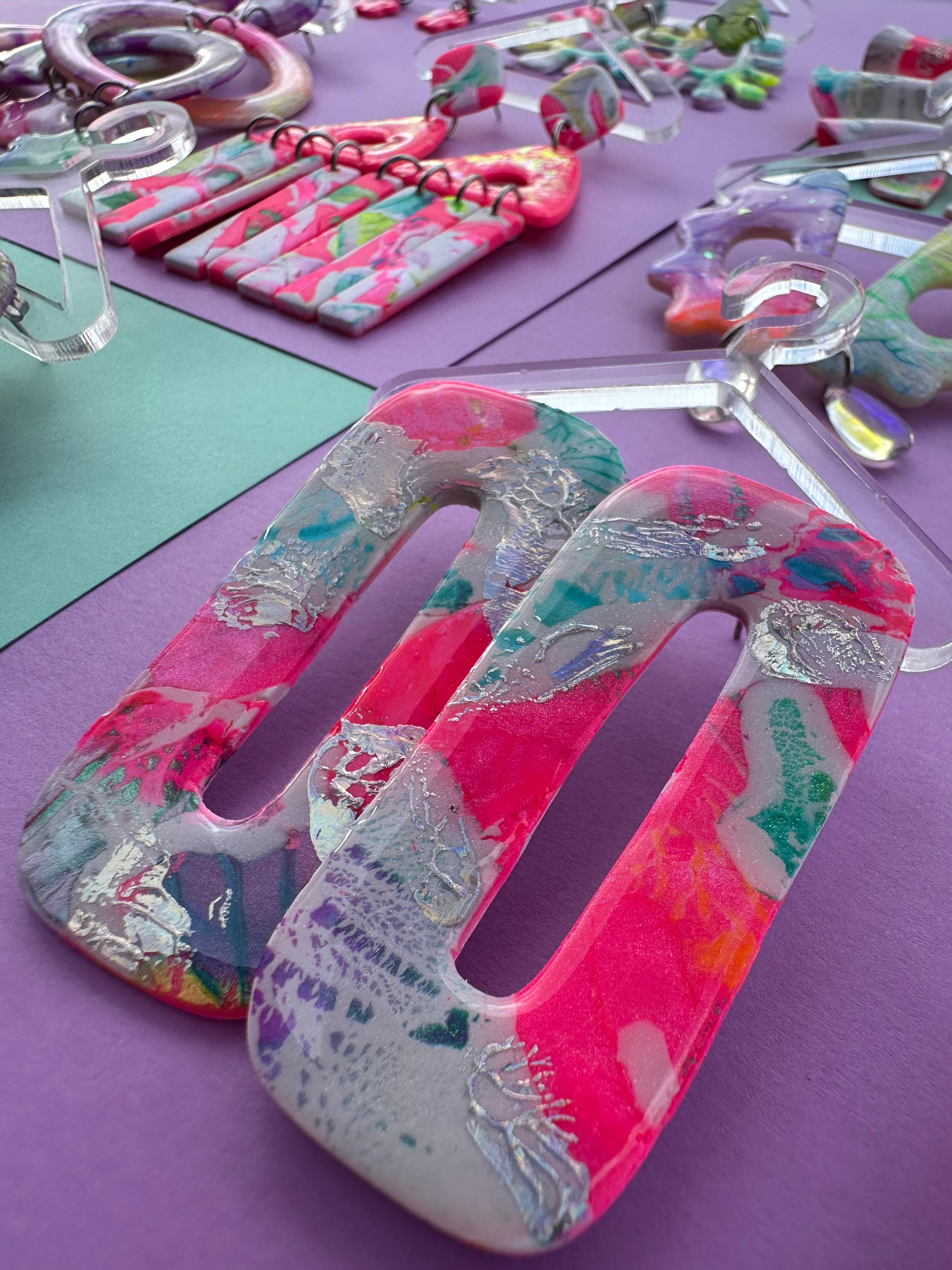 Lydia Hearts - Green Goes Good with Pink Statement Earrings