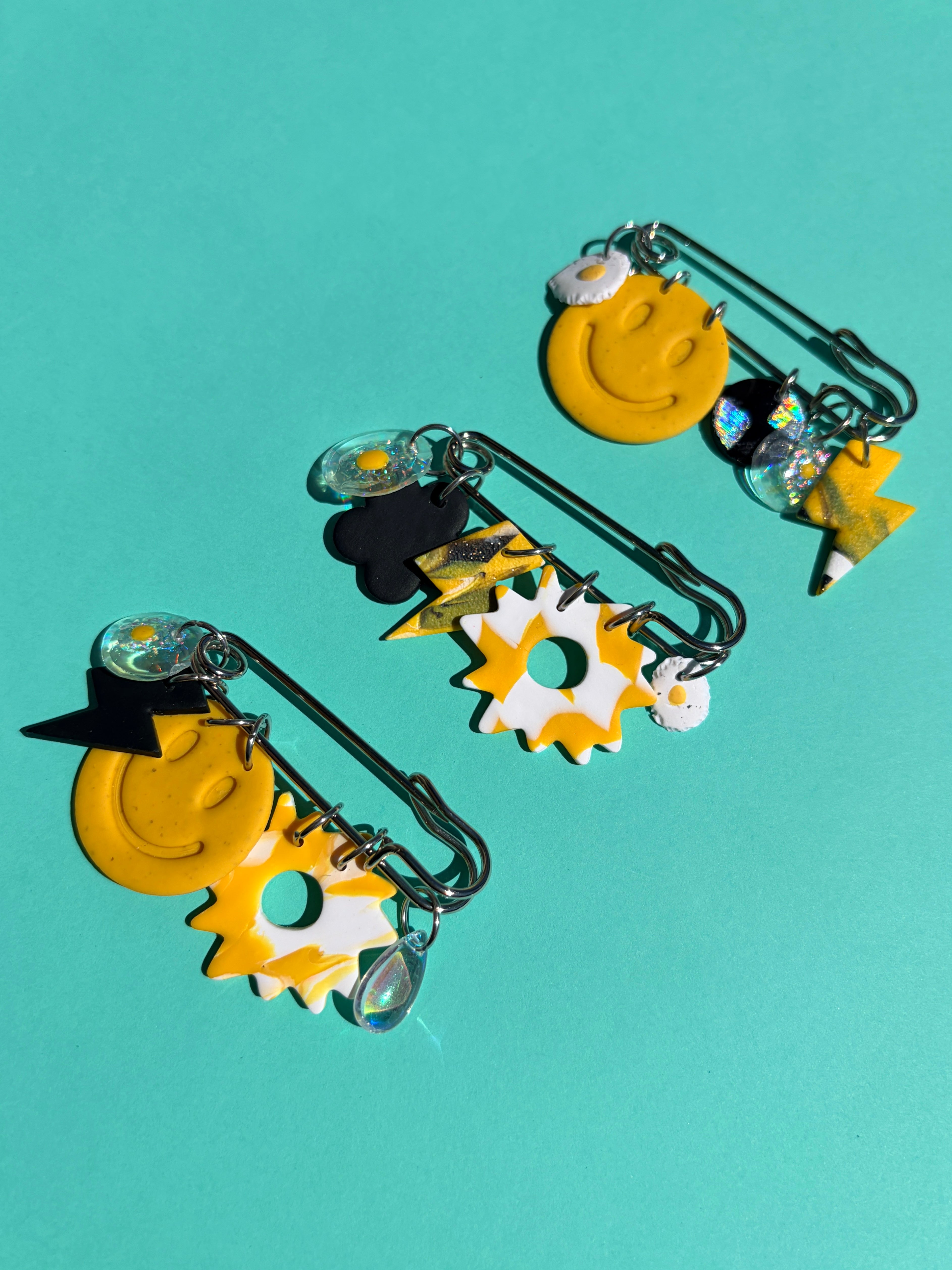 Charm Pin Broaches - Egg, Smile, & Holo Checkerboard Mix - Select Styles