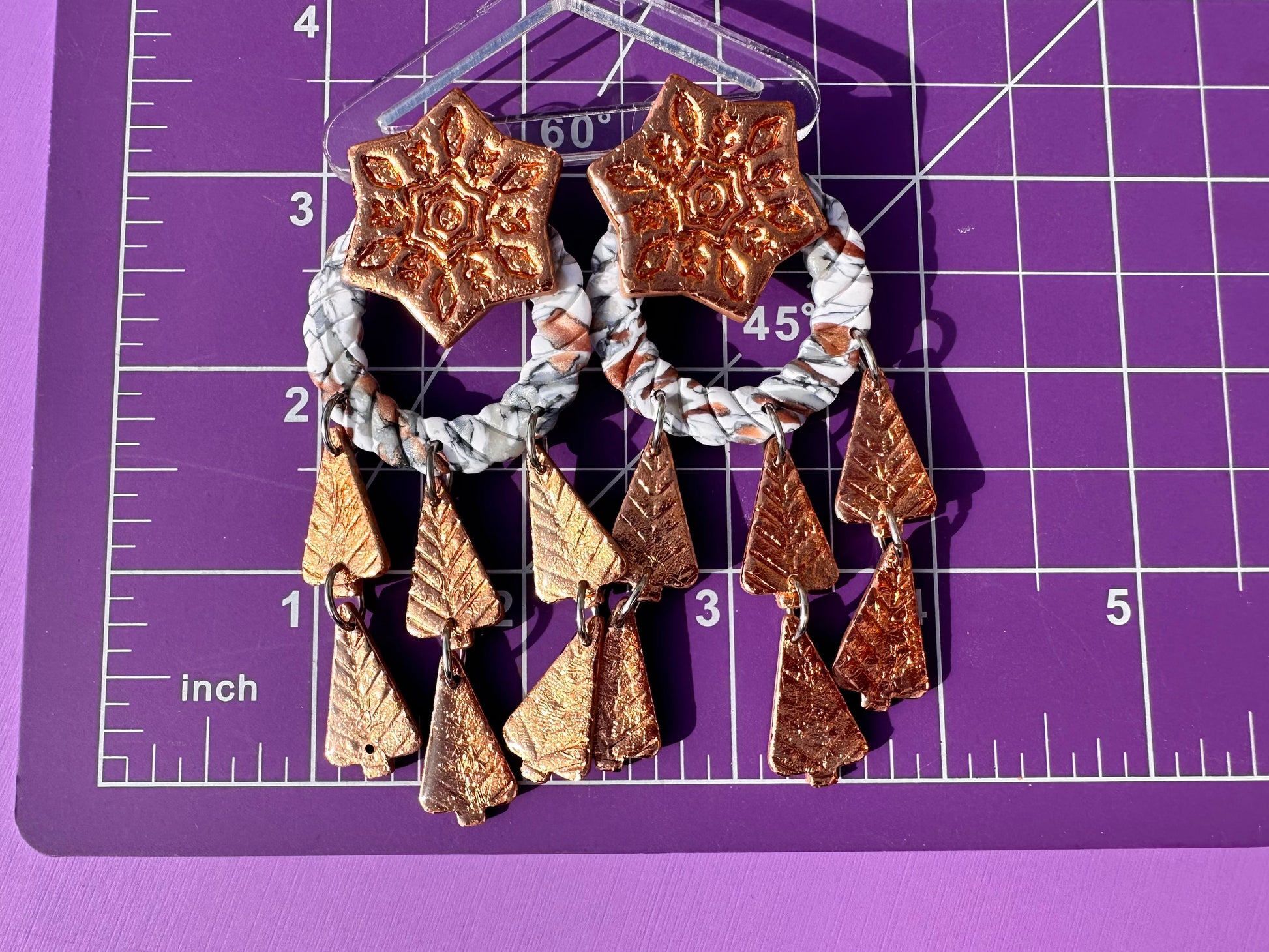 Snowy Juniper in Radiant Marble & Copper Statement Earrings